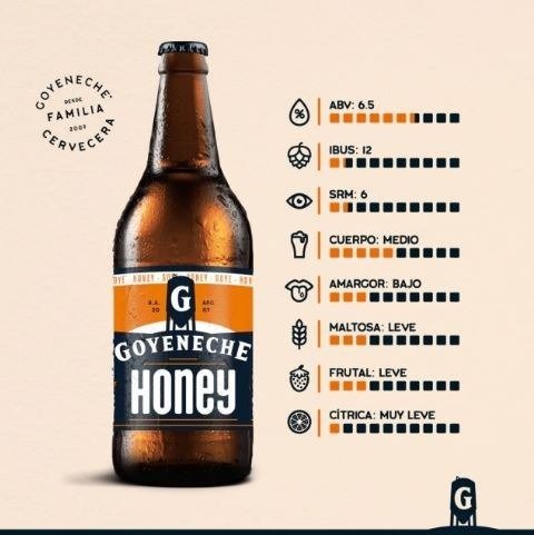 Cerveza de color dorado profundo con el aporte justo de miel que se luce junto a un complejo blend de maltas. Perfectamente balanceada y de alta tomabilidad, final seco con retrogusto dulce y aromático.